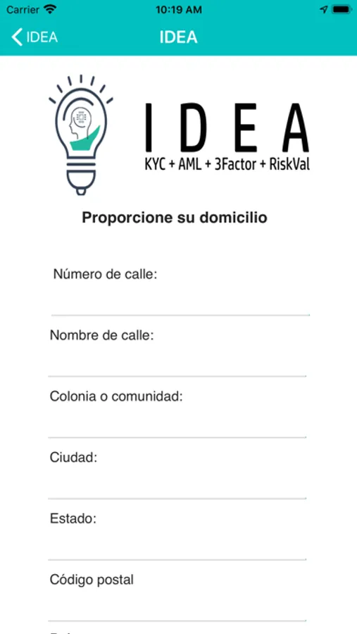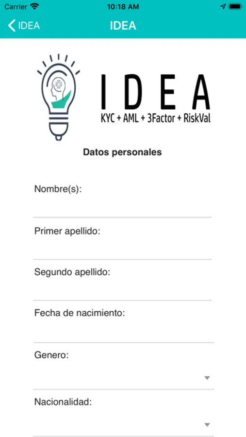 La plataforma permite cuando la institución financiera o empresa FINTECH lo requiera, que el usuario de la aplicación capture información sobre datos personales que formarán parte de la verficiación de información. Entre esta información se incluye nombre completo, fecha y lugar de nacimiento.