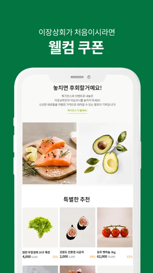이장상회는 보다 좋은 먹거리와 제품을 더 많이 더 빠르게 소비자와 연결시켜주기 위해 다양한 이벤트와 구매 혜택으로 고객과 소통합니다. 각 생산자 파트너는 더 많이, 더 빠르게 고객을 확보할 수 있고 소비자는 더 좋은 상품, 제품을 더 저렴하게 구매할 수 있습니다.
