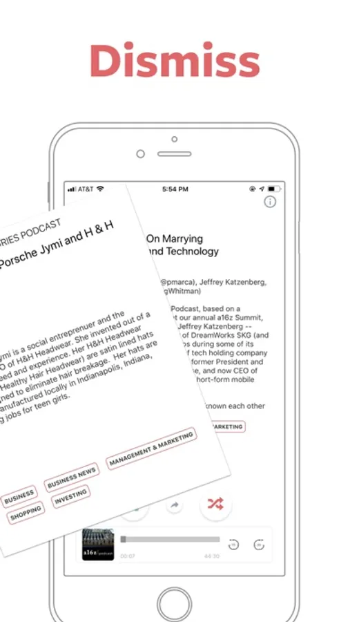 • Dismiss to discover: say goodbye to an uninteresting episode, you will discover a new one which is more likely to hit you. You can keep away from your disinterested episodes while avoiding to consume superfluously similar audio contents. Burst your cultural or ideological bubble, keep an open mind, and embrace democracy.