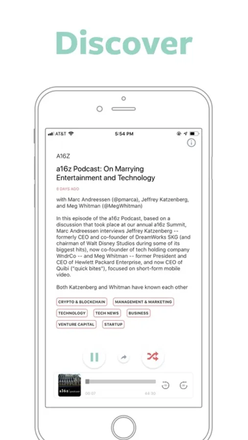 • A random episode every time: chance on different podcast episode that you didn't know you were interested. No need to regret if you miss some podcasts. You'll always find more interesting ones.