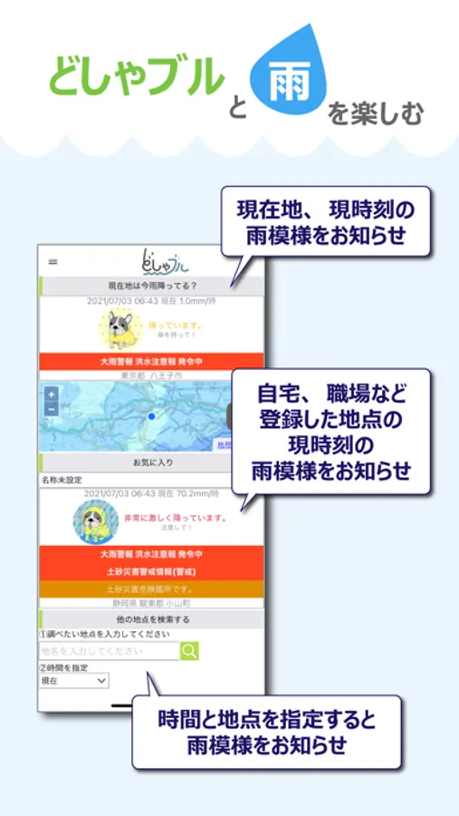 また、「どしゃブル」による提供情報も予告なく変更、追加、削除される可能性があります。
