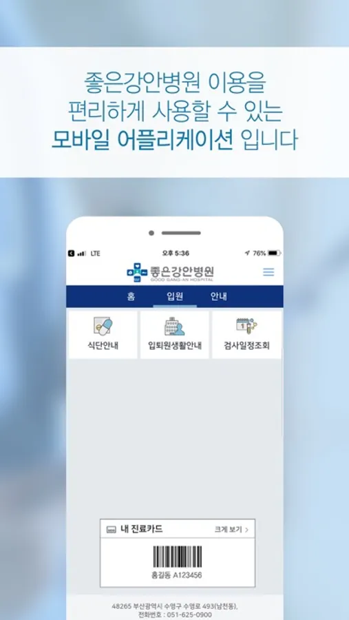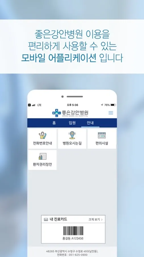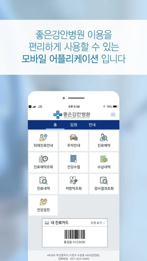 좋은강안병원을 편리하게 이용할 수 있는 모바일 어플리케이션 입니다