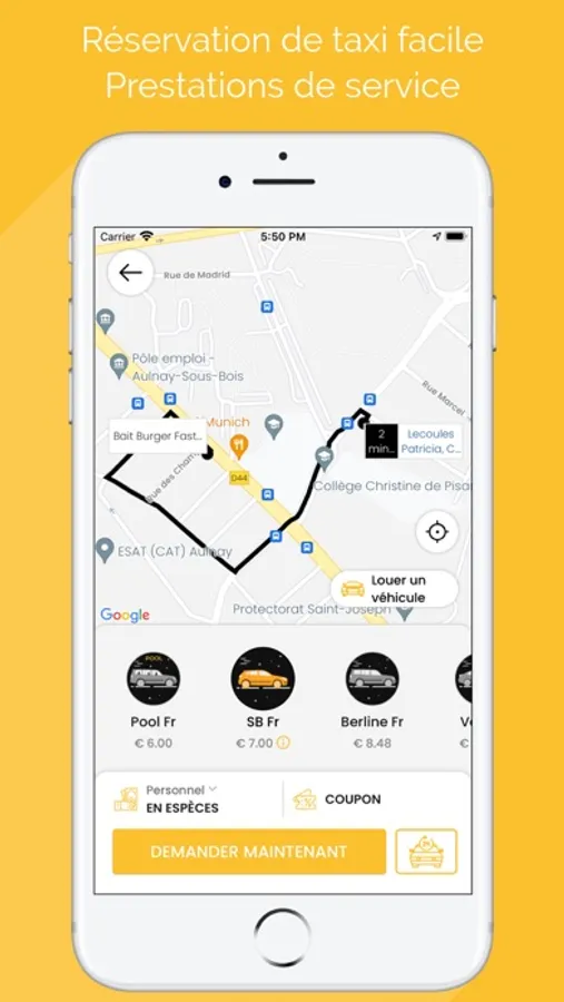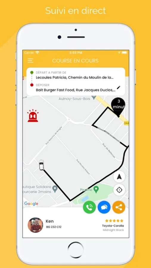 Visualisez votre chauffeur en approche sur une carte de géolocalisation.