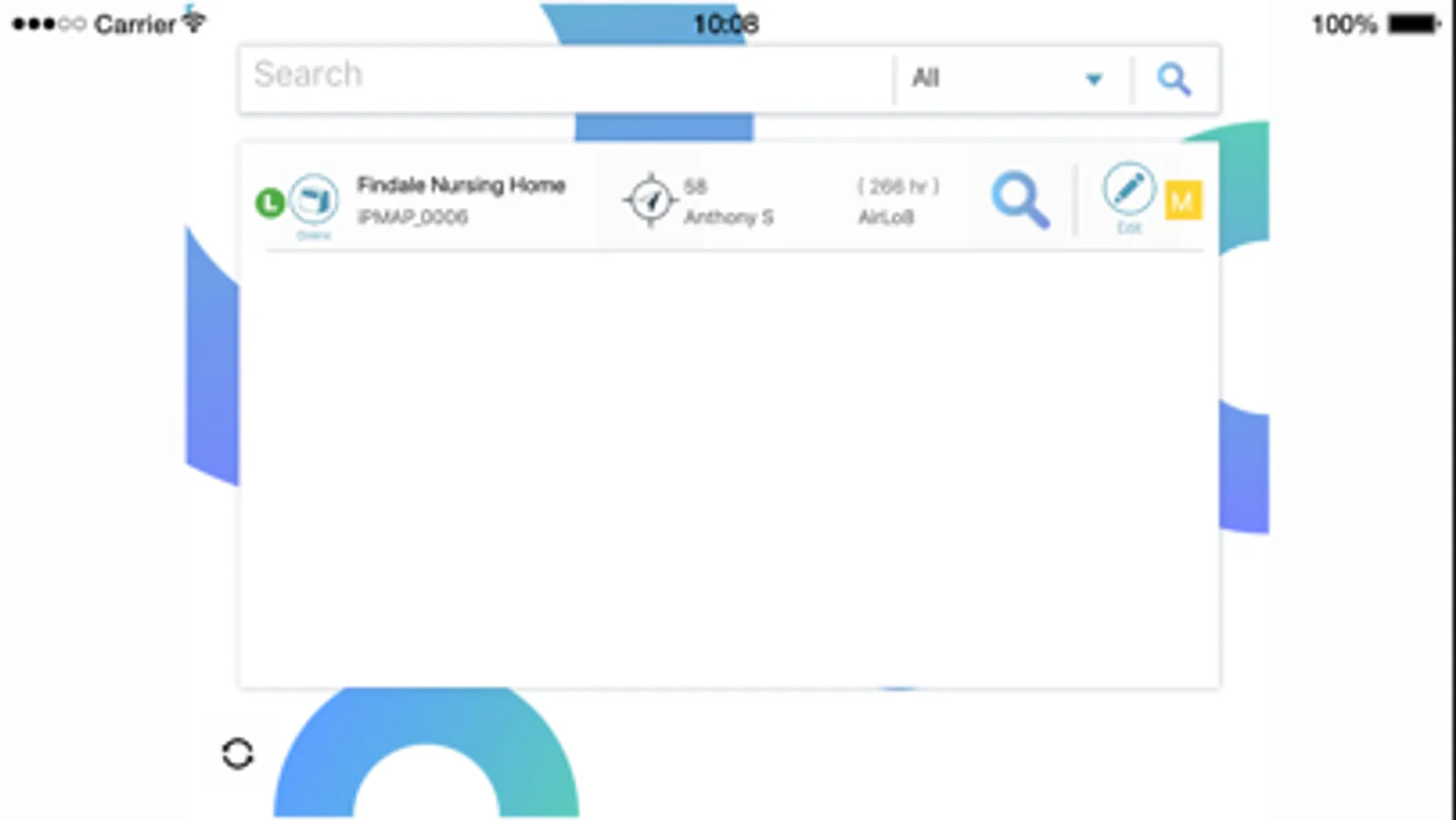 The Home Screen above details the facility, map location, patient name, risk level and room number.