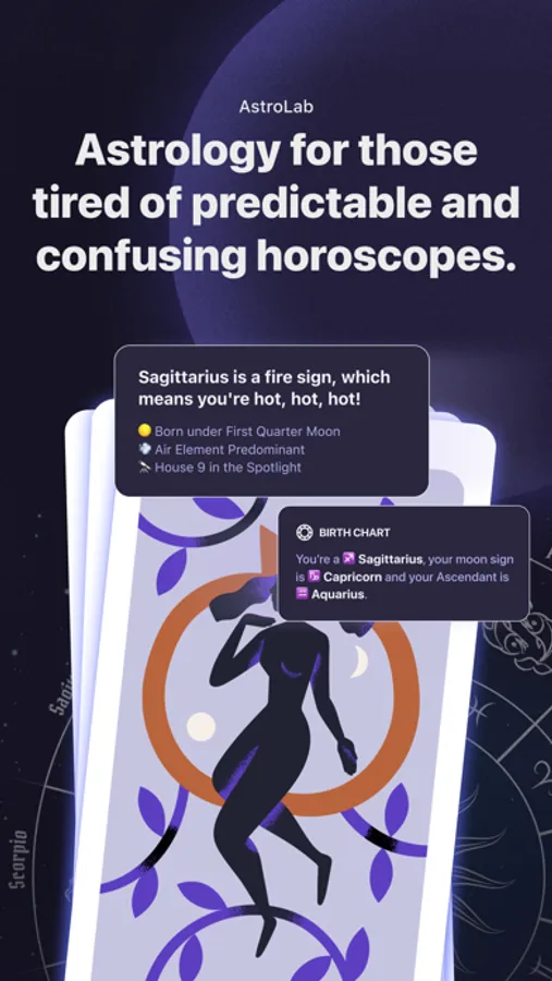 Introducing "AstroLab" - the astrology app for people who want to go beyond the typical horoscope. Our app is designed for those who seek a deeper understanding of themselves and the universe around them.