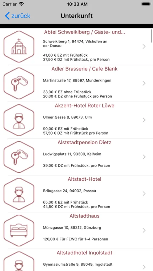 Sie sind mit dem Fahrrad unterwegs oder reisen in ihrem Fahrzeug - hier finden Sie Unterkünfte in jeder Ortschaft entlang der Donau. Wir haben vom 5-Sterne-Hotel bis zur Pension über Ferienwohnung bis zum Campingplatz in einer Entfernung bis zu ca. 2 km zur Donau für Sie eine umfangreiche Kontaktliste zusammengestellt. Je nach Ihrem Tagespensum, ob 20 km oder 150 km, wählen Sie ihren Zielort und geniessen Sie die Qual der Wahl für sich die richtige Unterkunft zu finden. In Ihrem Urlaub, auf Ihrer Radreise, beachten Sie bitte in der Hauptsaison (Mai bis September) Zimmer vorab zu reservieren.