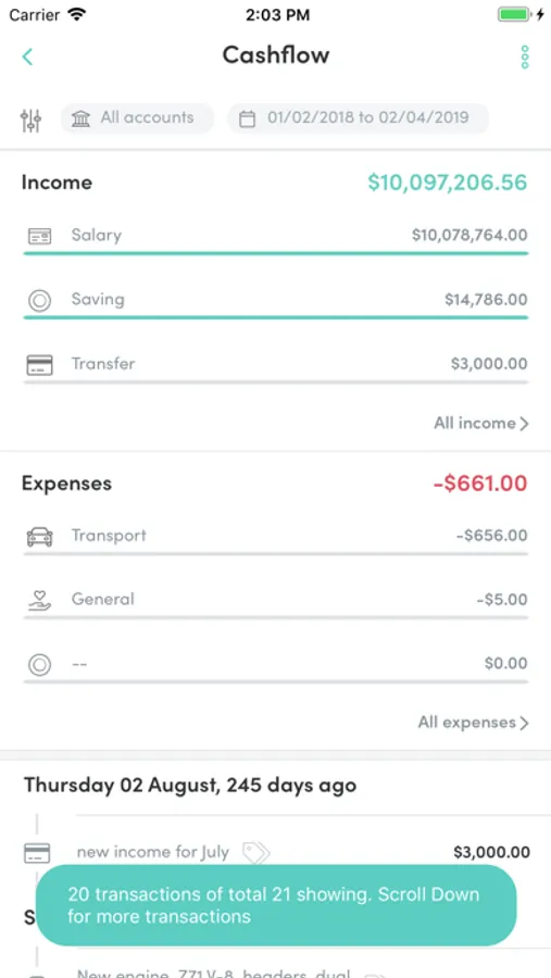 > Cashflow updates with the auto-categorisation of income and expenses