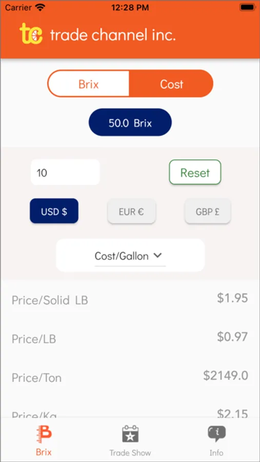 The Trade Channel Inc. App provides volumetric conversion functions used by suppliers, agents, sales associates, manufacturers and brands within the global beverage and flavor/fragrance industries.