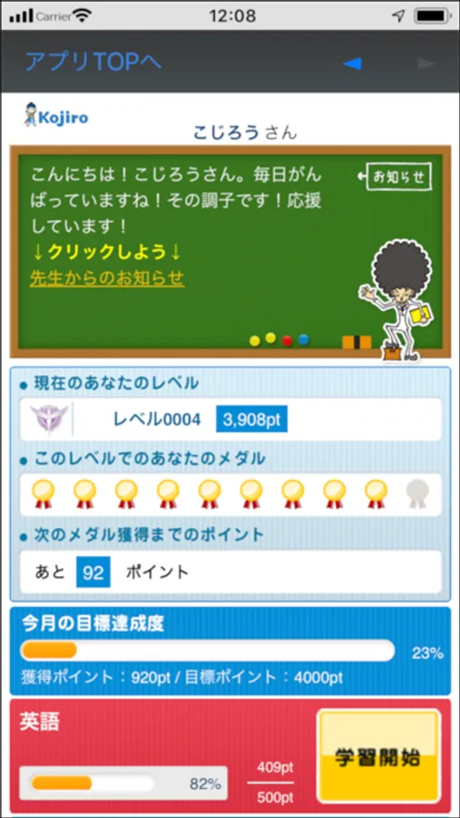学習の習慣がなくても、操作しやすいインターフェイス・4択式の出題・ポイントの仕組みで、継続的に利用できるような工夫を凝らしています。