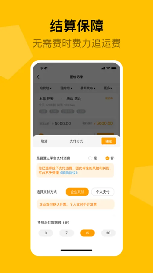 平台客服全程跟进货主结算,无需费时费力追运费,承运完成即可提现,提现秒到账