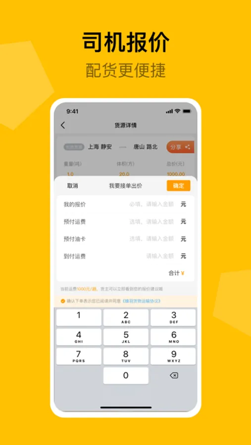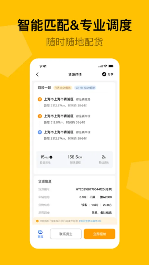 基于移动互联网技术开发的手机信息物流的货运安全平台,拥有海量华南华中一手货源!货源实时更新、精准匹配、根据偏好线路精准推送货源,为司机提供更高效便捷的收益方式!降低空返率,敢于放空赔付,立志成为一家真正被司机信赖的互联网物流配货拉货品牌!