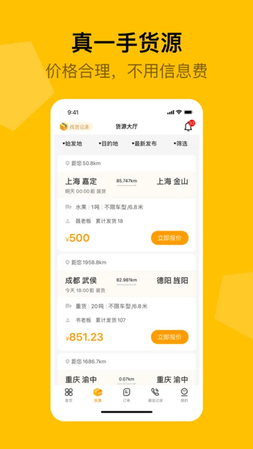 是一款用于寻找物流一手货源信息,发布物流车源信息的软件。