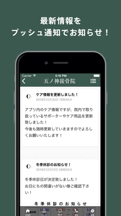 五ノ神接骨院の公式アプリでは、アプリユーザー限定の様々なサービスを受けることができます。