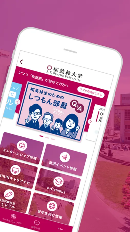 桜美林大学の学生のために、就活イベント・インターンシップ等の情報を提供するアプリです。就活準備に役立つ情報を確認できます。