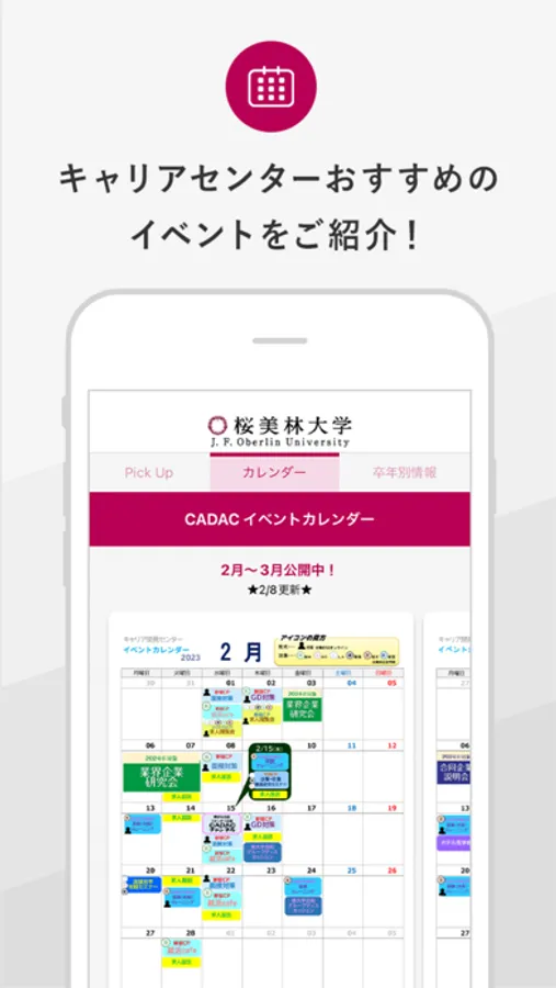 大学情報や就活準備・インターンシップに関する学内イベントなどの情報をプッシュ通知でお届けいたします。