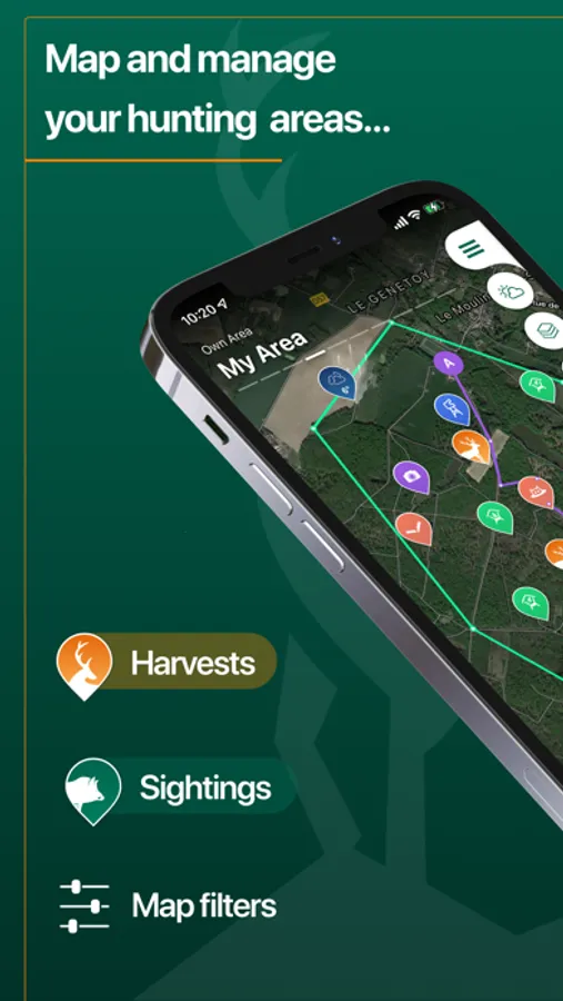- Manage hunting areas by yourself or in a group, set tasks for yourself or others at specific points.