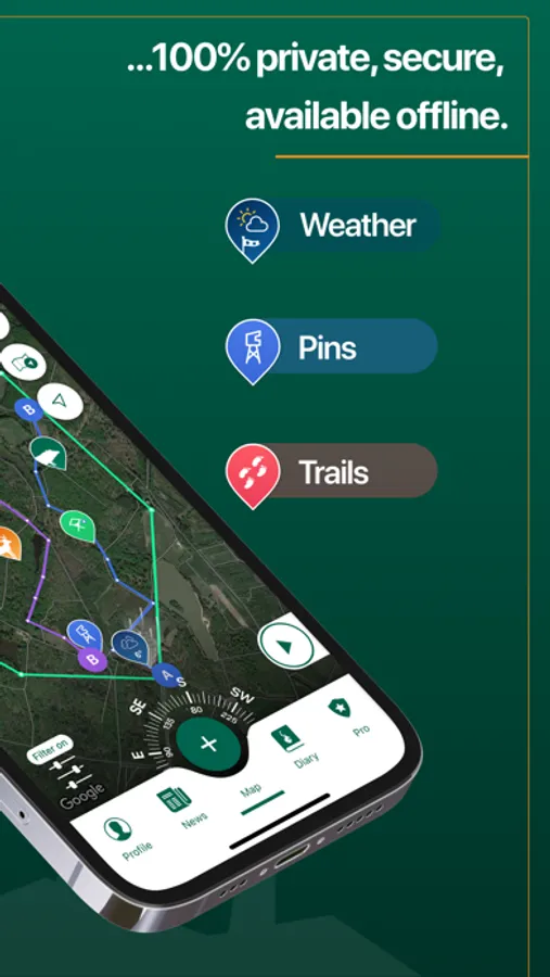 - Mark trails and paths through your hunting areas for greater accuracy.