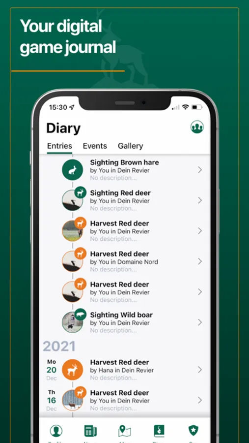 RECORD YOUR ADVENTURES IN THE HUNTING DIARY.