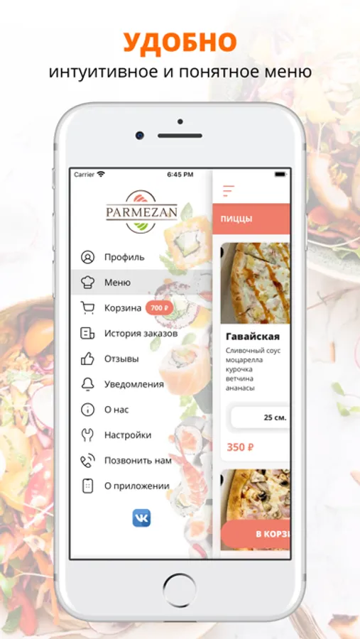 Приложение Parmezan | Казань — это удобный способ заказа еды домой или в офис! Выбирайте и заказывайте вкусную еду с доставкой всего в несколько кликов!