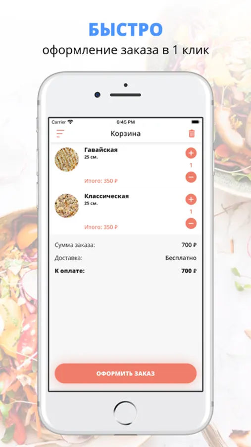 Скачивайте наше приложение, оформляйте заказ и наслаждайтесь любимой едой, где бы Вы ни были! Приятного аппетита!