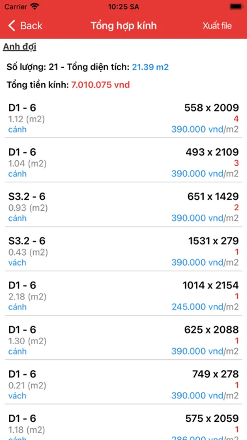 2. Tính ra được báo giá chi tiết vật tư cho từng bộ cửa nhằm báo giá cho khách hàng, cân đối lợi nhuận một cách chính xác nhất
