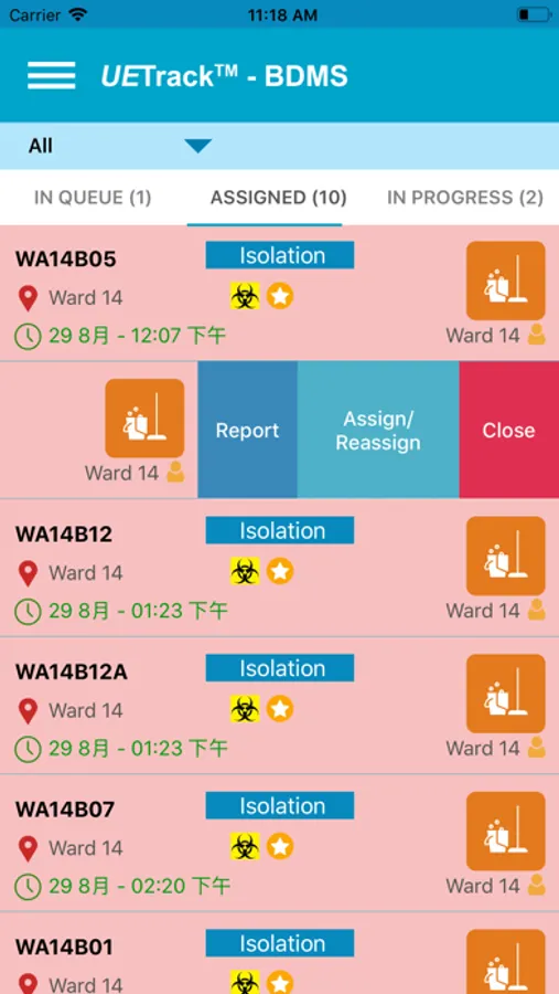 request is automatically routed to the housekeeping staff in charge in the Ward. With UEMS