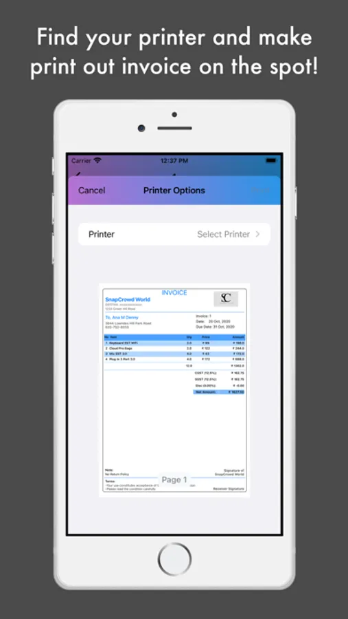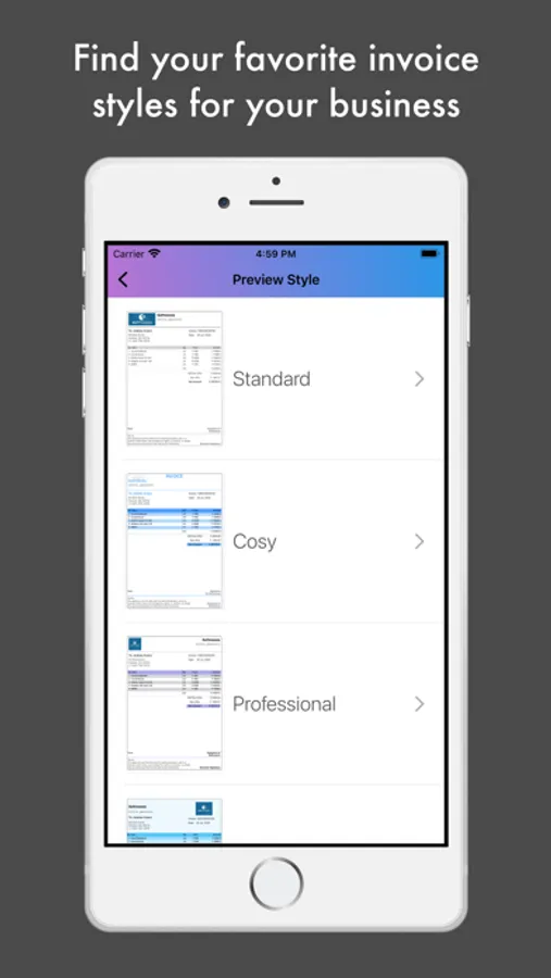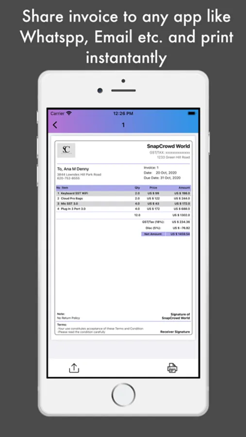- Share invoices to Whatsapp, Mail, Skype, etc.