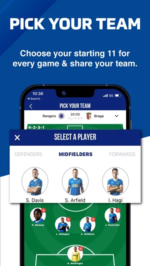 Choose your starting 11 for each Rangers fixture on our line-up builder and share with your friends socially.