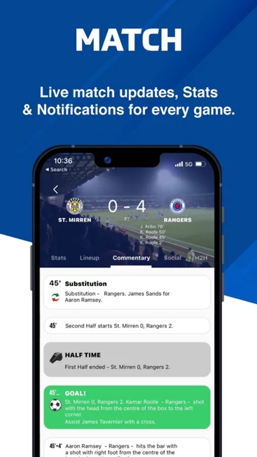 The number one football app for Rangers fans! Get your Rangers live scores, instant goal alerts, breaking news, transfer updates, match stats, match highlights, fixtures, results, and Rangers fan podcasts all in one place.