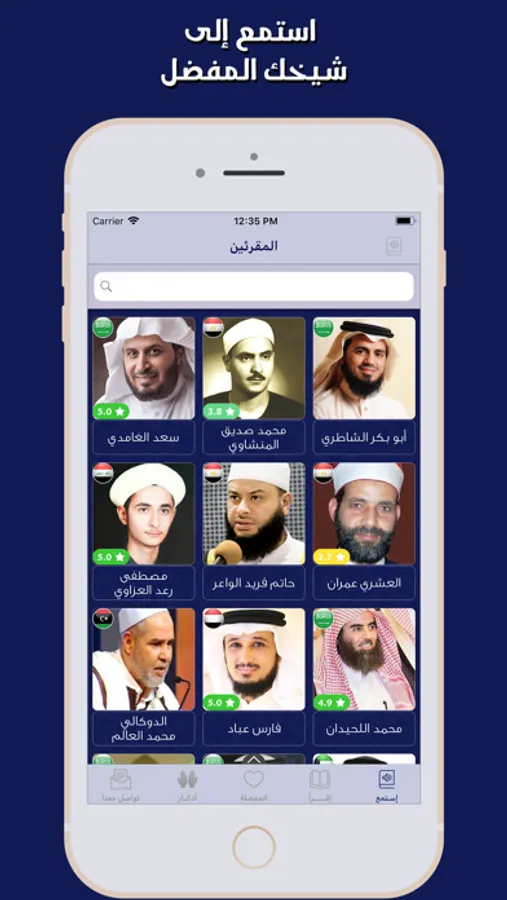 * العديد من أفضل الشيوخ مثل عبد الباسط عبد الصمد, عبد الرحمن السديس, فارس عباد, مشاري العفاسي, ماهر المعيقلي و المزيد كما يوفر كذلك