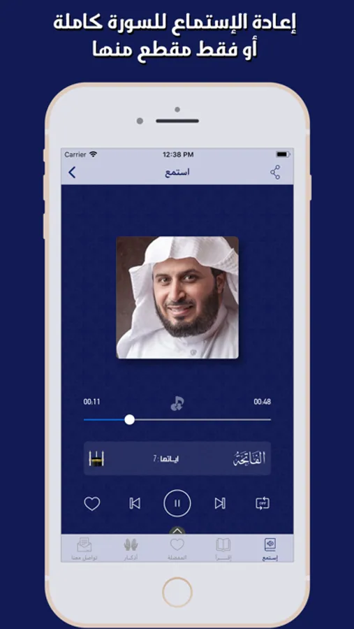 * خاصية إعادة الإستماع إلى السور كاملة أو فقط مقطع منها حسب إختيارك لسهولة الحفظ