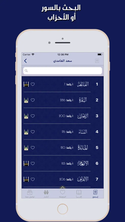 * جميع سور القران الكريم بجودة مميزة معروضة حسب السور أو الأحزاب مع جميع تفاصيلها كعدد الاَيات و مكان النزول...