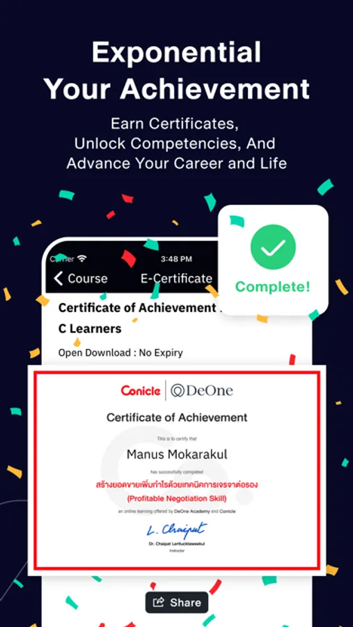 Learn anywhere anytime on ConicleX through variety of contents from top universities, experts, and organizations. Join the community of learning to share and engage with other learners and instructors. With the completion of learning, earn the certificates issuing by top universities and organizations.