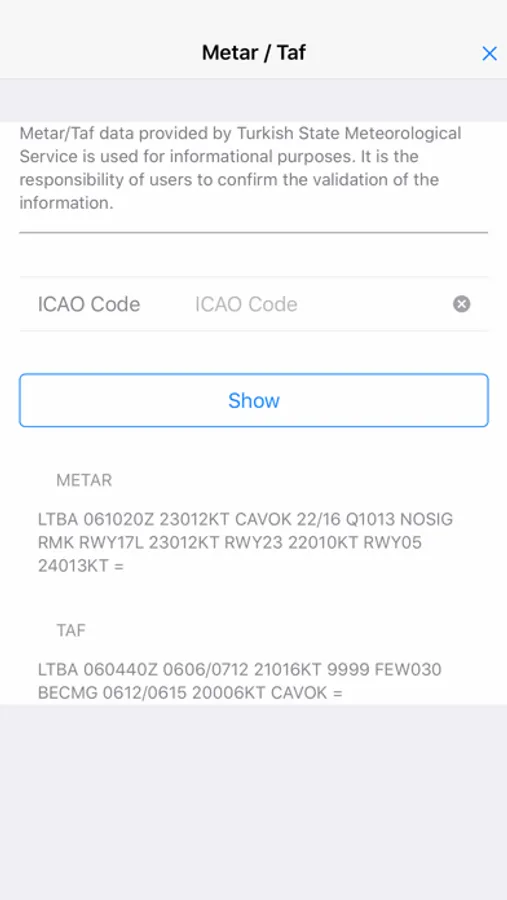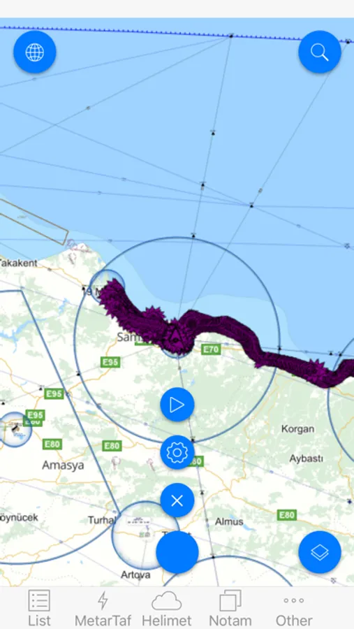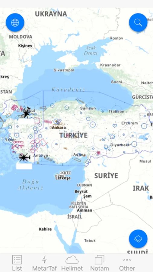 Meteoroloji, notam ve havacılık haritaları bilgileri kullanıcıları bilgilendirme amacıyla sunulmaktadır.