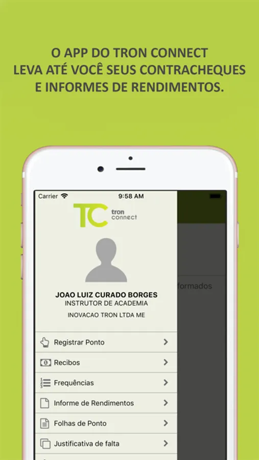 Com ele os colaboradores das empresas contratantes do Portal Web Tron Connect podem visualizar de forma simples informações como o demonstrativo de pagamento e o informe de rendimentos.
