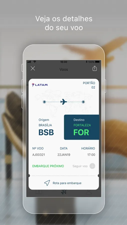 Você também vai ver como é fácil encontrar o seu portão de embarque. Agora, é possível traçar uma rota no próprio aplicativo para indicar para onde você deve caminhar. Para explorar melhor as principais áreas do Aeroporto JK, experimente fazer o tour 360º ou conferir a nossa lista de lojas, restaurantes e outros serviços exclusivos que oferecemos.