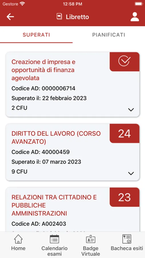 - Consultare la propria CARRIERA UNIVERSITARIA, con il LIBRETTO e tutti gli insegnamenti, i CFU, gli appelli disponibili e l’A.A. DI FREQUENZA;