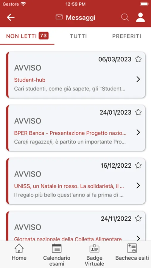 - Ricevere MESSAGGI UFFICIALI dell’Università;