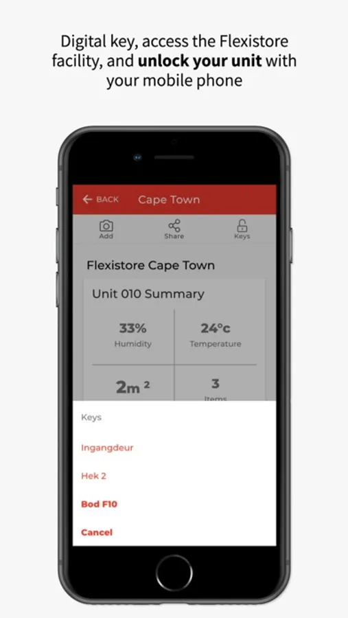 - Digital key, access the Flexistore facility, and unlock your unit with your mobile phone.