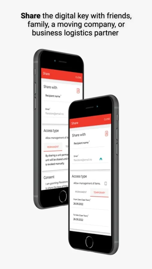 - Share the digital key with friends, family, a moving company, or business logistics partner via the app.