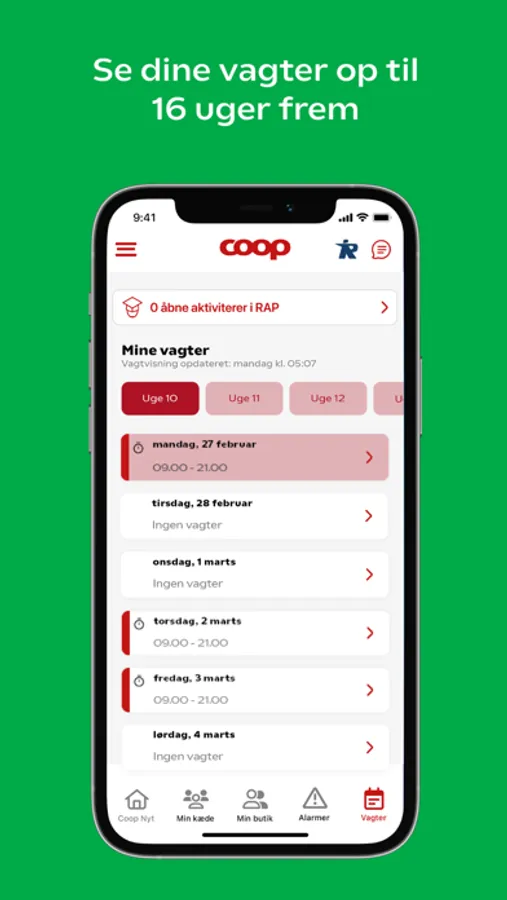 'Os i Coop'-appen er for dig, der gerne vil holde dig orienteret om, hvad der sker i Coop. Som medarbejder i Coop kan du læse relevante nyheder, kommunikere med kollegaer i din kæde og butik, samt finde relevant information, træning, din vagtplan, alarmer og meget mere i appen.