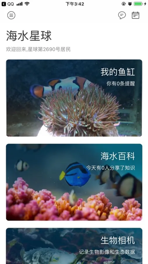 海水星球是海水鱼饲养知识交流分享的APP,它是一个包含非常广泛的海水鱼饲养知识及饲养技巧的APP,从最基本的海水鱼初学者技巧应用到难度较大珊瑚饲养,以及混养技巧,从基本的海水鱼病防治到高深的人工海缸环境建设,从海洋生物专业知识学习到海水成分研究,可以供海水渔友进行相关海洋生物饲养知识的学习与交流互动。