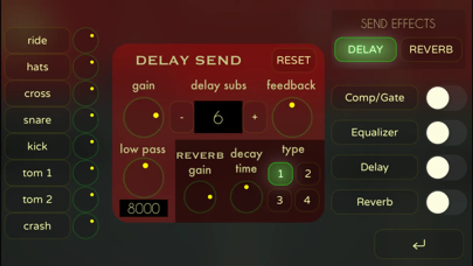 - Delay and Reverb Send effects creates warm reggae and dub environments.