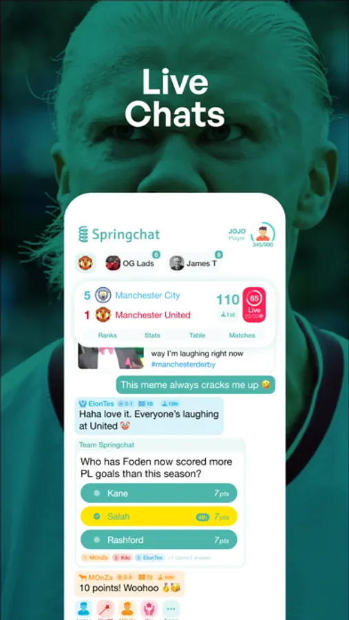 We'll connect you with other fans, in small chatrooms to discuss and compete while you watch a live match. We have gamification features linked to the live game to enjoy while you chat and we'll also feed through commentary, live statistics, as well as trending tweets about the game you're watching - while you chat.