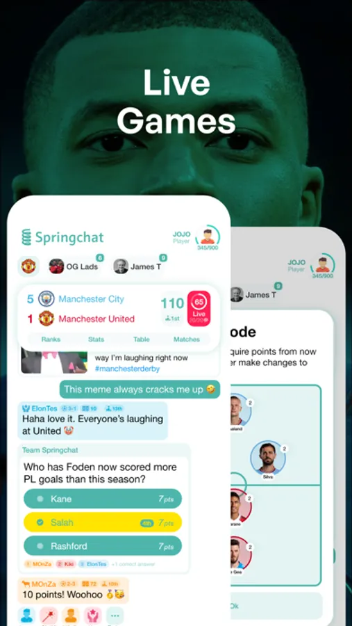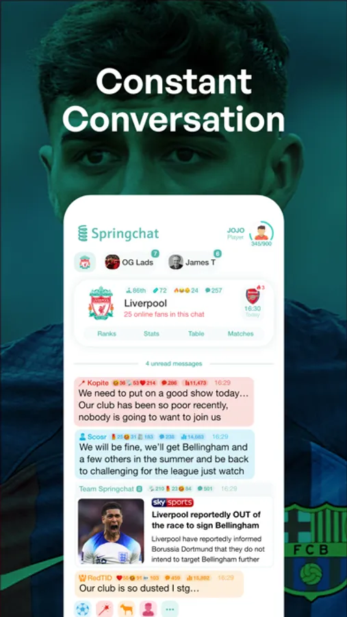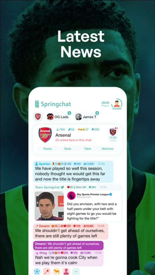 When there are no upcoming live matches, enjoy keeping up to date with all the latest football news, tweets and videos in one seamless Teamchat!