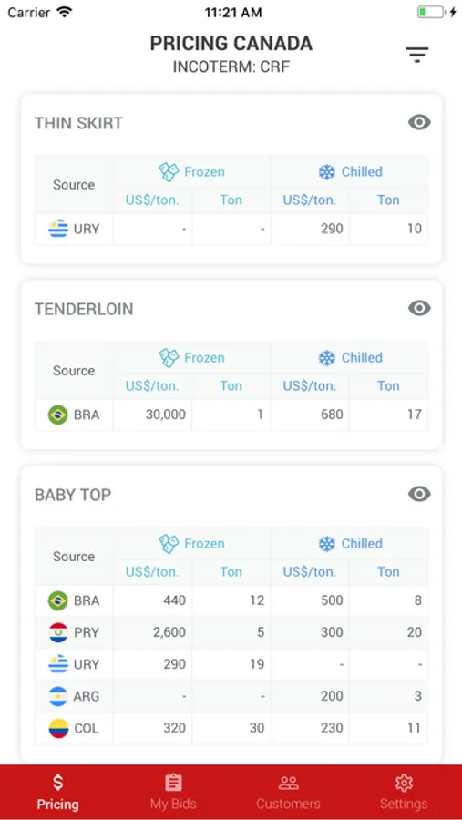 Through this application, you will stay on top of the price and availability tables of the cuts offered to your Marketeer and will also be able to create and monitor the status of your BIDs, in which we will negotiate to make the best decisions