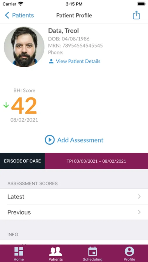 Patient List - your one stop shop to view all your patients and their most recent Mental Health assessment results.