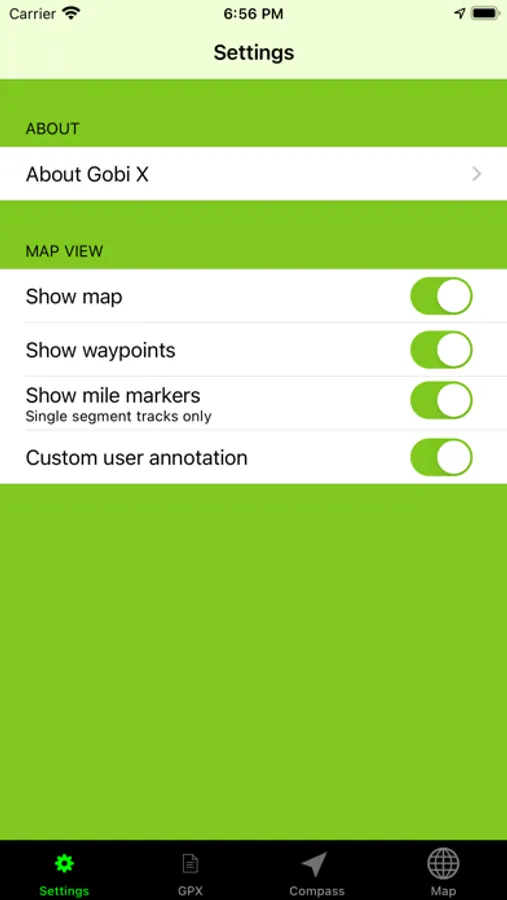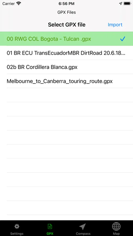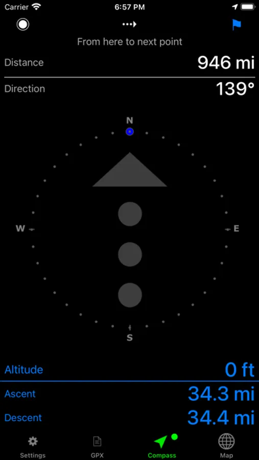 This application provides navigation support using GPS data and previously recorded tracking points. A GPS signal, but no internet connection is required to provide this functionality. Tracking points need to be imported from a valid GPX file. Since the GPX coordinates are not necessarily tied to the road system, it is possible to navigate anywhere on Earth with GPS satellite coverage.