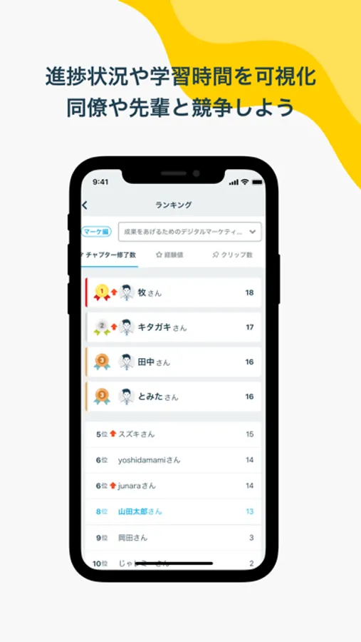 企業向け人材育成SaaS「グロースX」は、マーケティング、BtoBビジネス、AI・DXなど、人材育成に必要な知識を体系化したアプリです。1日15分で手軽に学習できる独自のシステムと、学習進捗の分かるダッシュボードで、チーム全体のスキルの底上げを行い、業績向上に貢献します。