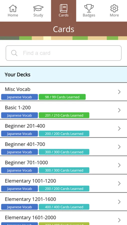 Hammer Cards uses a unique study system that tracks how well you know every vocabulary word, so you can learn more words in less time.